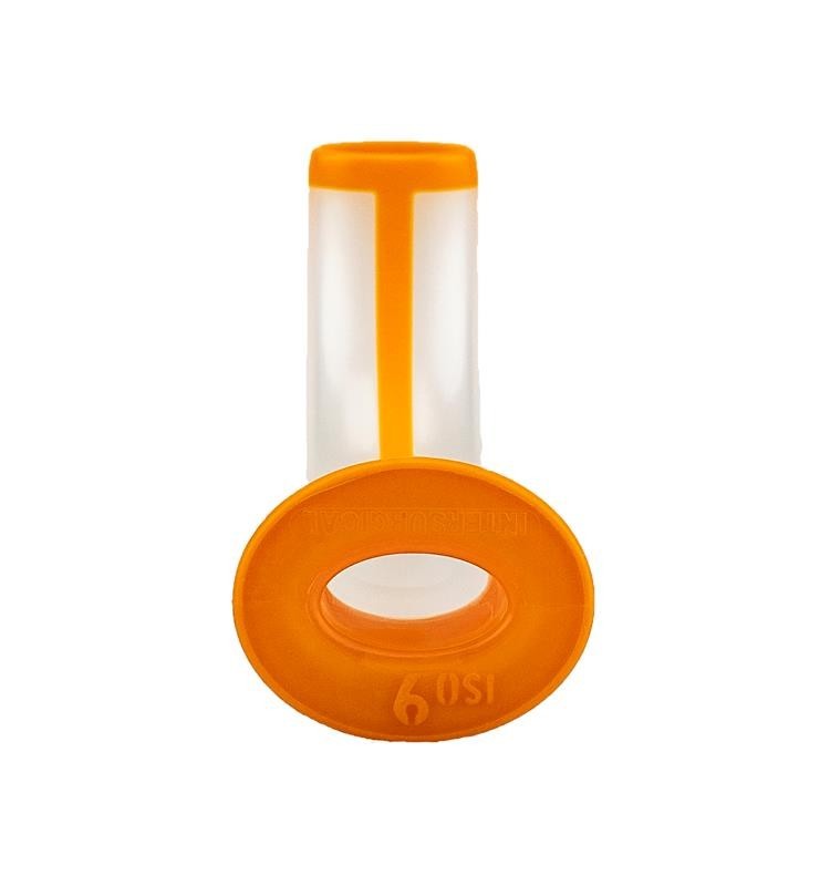 Su diseño de una sola pieza integra dos materiales con diferentes propiedades en un único molde, mejorando la estabilidad y eliminando la separación en la zona de mordida presente en modelos convencionales. Identificada por código de color naranja para una rápida selección del tamaño.