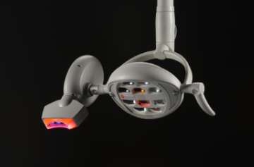 Core White es una lámpara blanqueadora LED para odontología que concentra la luz en un patrón rectangular homogéneo para optimizar los tiempos y la eficacia del tratamiento. Puede integrarse en lámparas G.Comm (Polaris/Iris) o instalarse como equipo independiente mediante soporte o brazo con abrazadera.