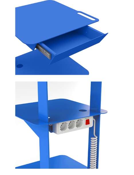Carro de tres estantes electrificado con 3 tomas y cajón