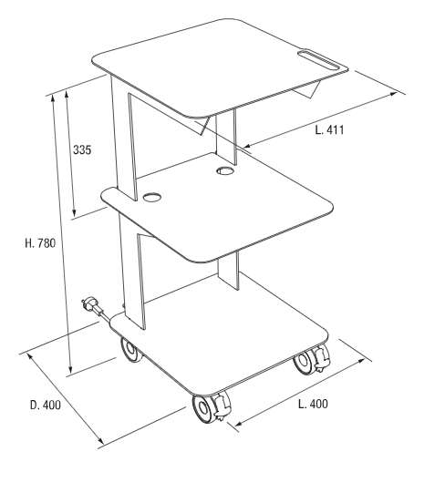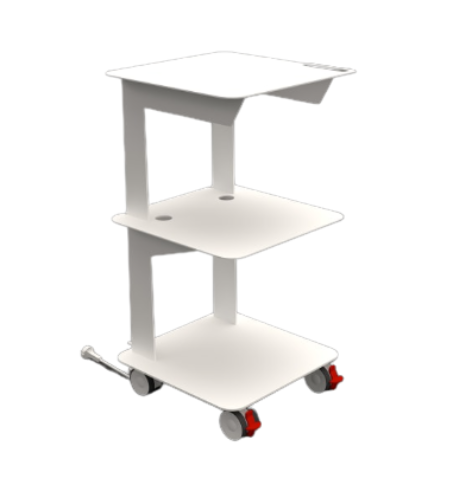 El ASTRO es un carrito de tres estantes con la opción de incorporar un cajón práctico bajo el primer nivel. Diseñado para ofrecer versatilidad y maniobrabilidad, destaca por su estética contemporánea con líneas simples y esenciales, ideales para entornos clínicos, dentales o sanitarios.